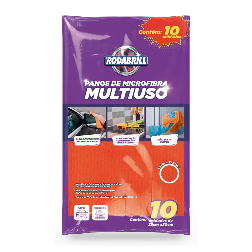 El Paño de Microfibra Rodabrill está indicado para la limpieza de automóviles, motocicletas y cualquier superficie lisa. Su uso evita rayones y contribuye a un mejor rendimiento de los productos Rodabrill.